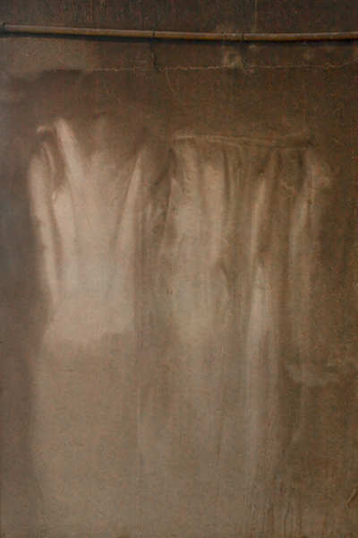 The smoky, ethereal forms were created when smoke buffeted around and behind clothes that had been hung on nails on the walls, presumably because of a lack of closets.