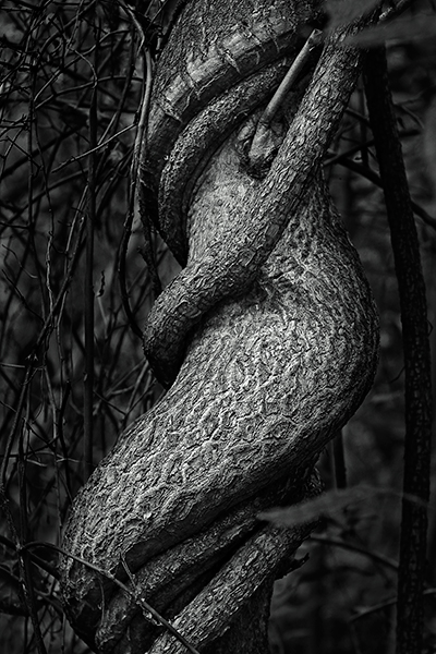 This series is a group of anthropomorphic images of tree trunks, roots, and branches. It began with a vine-coiled trunk on the grounds of a Trappist monastery in Virginia, and now includes images from California, Maine, Brazil and Mexico. This ongoing project has grown to approximately 35 images.